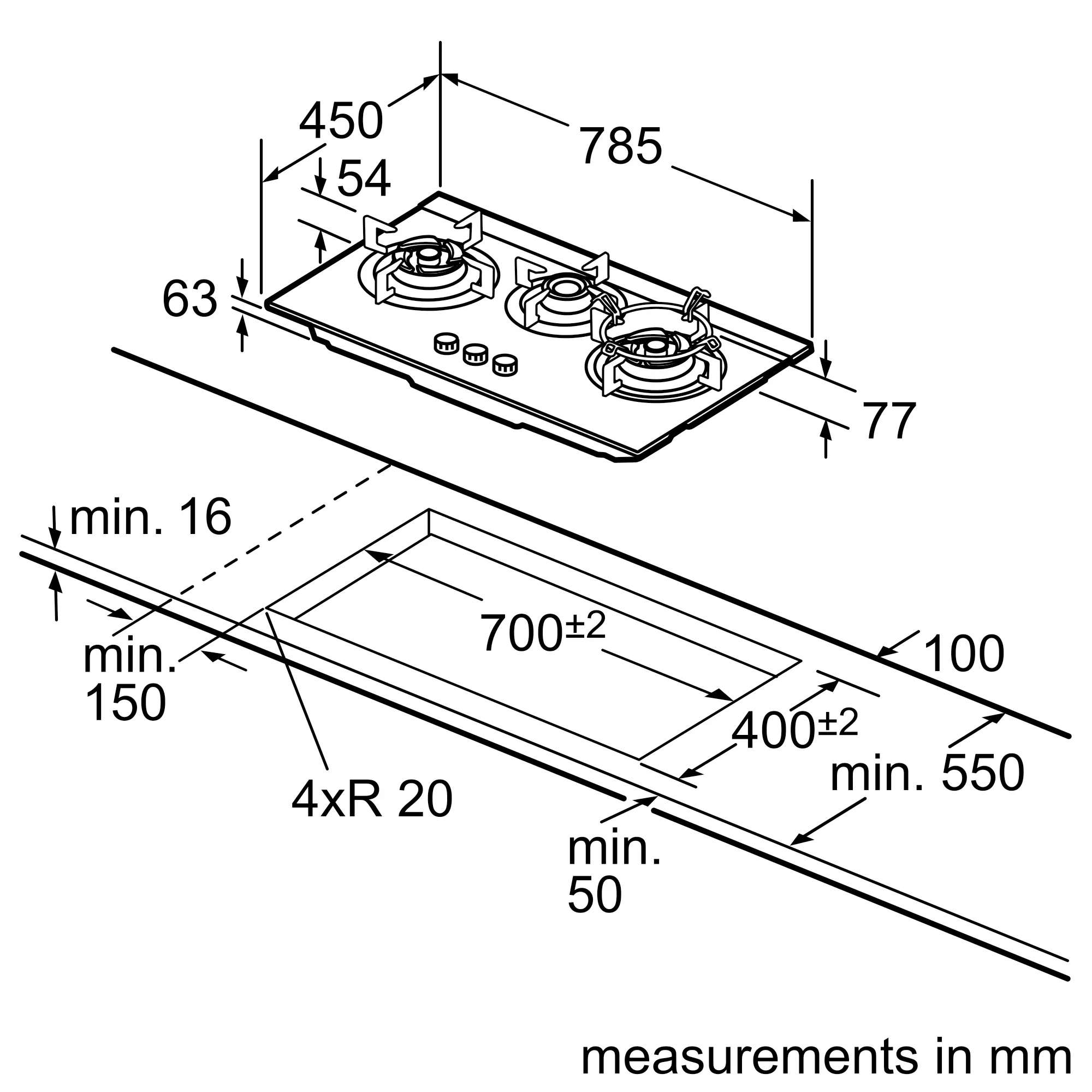 Series 4 Gas hob 78 cm Tempered glass, BlackPBD7332SG