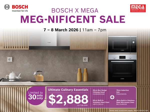 Enjoy exclusive deals when you shop at the MEG-NIFICENT SALE this March — available only for RSVPed customers! Grab the Ultimate Culinary Essentials deal with Hood, Hob, Oven and Microwave at only $2,888*.