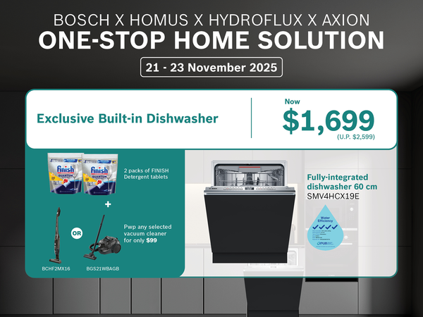 Missed the 11.11 Deals? Bosch Home Appliances Post 11.11 Encore Sale is Here! Don’t miss your last chance to snag exclusive deals on Bosch Home Appliances from 14 - 30 November 2025! Shop now and seize the savings while they last!